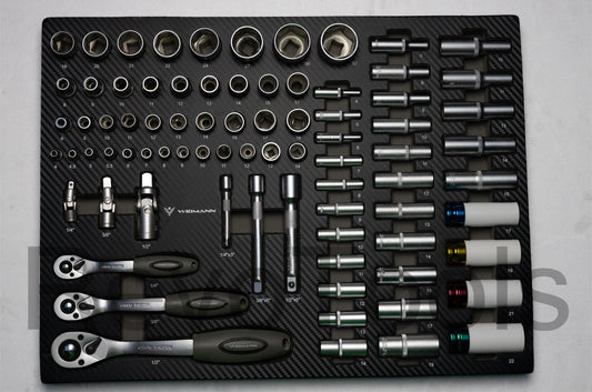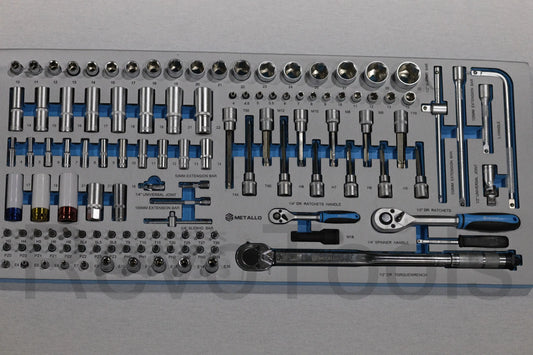 Metallo Gereedschapswagen | Doppen 1/4 3/8 1/2 , steeksleutels , Moment sleutel , Remzuig terugstel inlay| 8 Lades gevuld