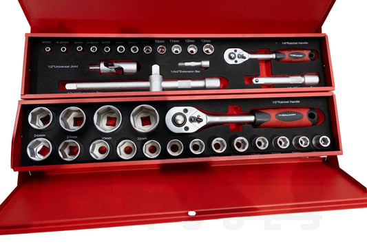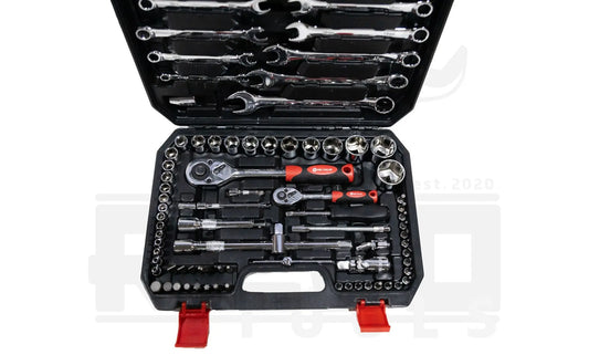 82-delige Metallo Doppenset met Steeksleutels – 1/2" en 1/4" Chrome Vanadium